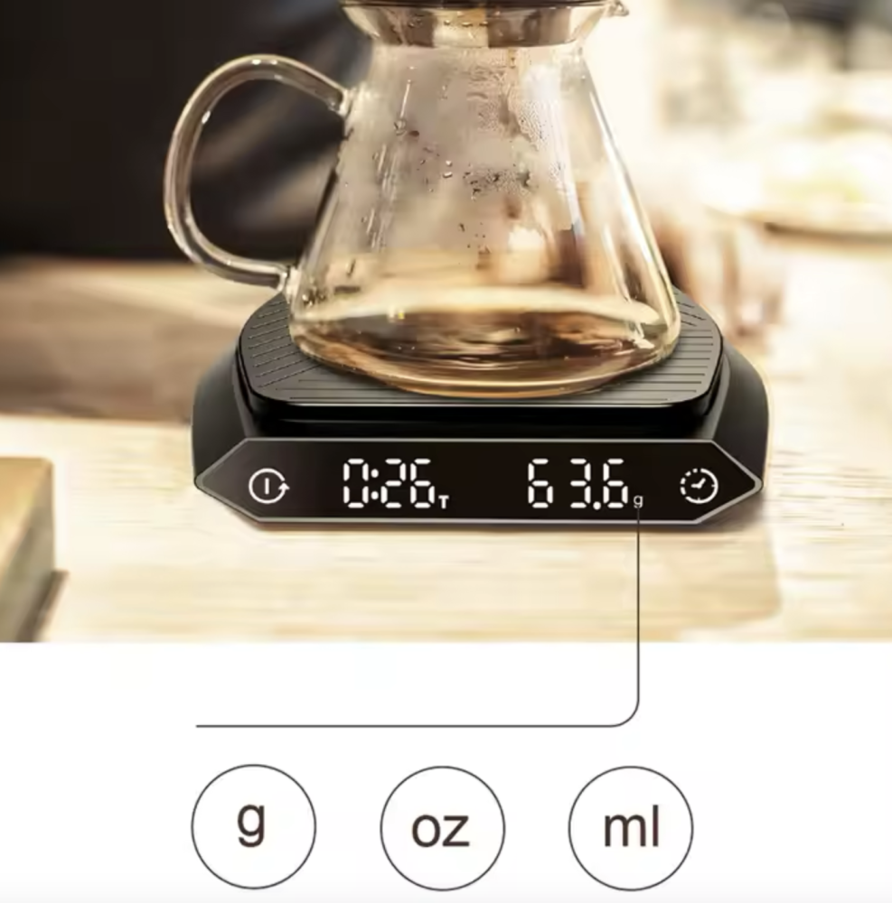 سواء كنتم من محبي تحضير الإسبريسو أو القهوة المقطرة، فإن هذا الميزان سيكون رفيقكم المثالي لتحقيق دقة متناهية في كل كوب